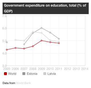 Kamēr mūsu bērnu sniegums starptautiskajos PISA testos bija mazliet zem attīstīto valstu vidējā, igauņi visus pārsteidza ar savu izcilo rezultātu, matemātikā pat apsteidzot vispāratzītos izglītības līderus somus. Jāpiebilst, ka Latvijas viduvējais rezultāts tiek sasniegts, pateicoties daudziem viduvējiem rezultātiem, bet mums ir īpaši maz bērnu, kam sniegums būtu izcils. Lai gan iedzīvotāju blīvums mums pat nedaudz lielāks kā Igaunijā (mums 31 iedzīvotājs/km2, Igaunijā 30,3/km2 ), skolotāju “blīvums” mums ir ievērojami lielāks: Latvijā uz vienu skolotāju ir 9,1 bērni, kamēr Igaunijā 12,5 (IZM dati). Skaidrs, ka šī atšķirība apēd vismaz trešo daļu no skolotāja algas Latvijā. Es zinu, ka es šobrīd izklausos pagalam slikti. Jo šobrīd es pretstatu bērnu intereses skolotāju interesēm. Un es nebūt neatbalstu mega skolas – bet arī Somijā, kuras vēstnieks Pasi Sahlbergs popularizē tieši nelielas skolas, ir 13,1 skolēnu uz skolotāju (lai gan iedzīvotāju blīvums gandrīz divreiz mazāks kā Latvijā). Tātad, ir jābūt saprātīgam skolotāju daudzumam uz vienu bērnu un darbu sadalījumam skolā, ko jaunais modelis arī cenšas ieviest. Pajautāsim sev vēlreiz: kas ir izglītības mērķis?